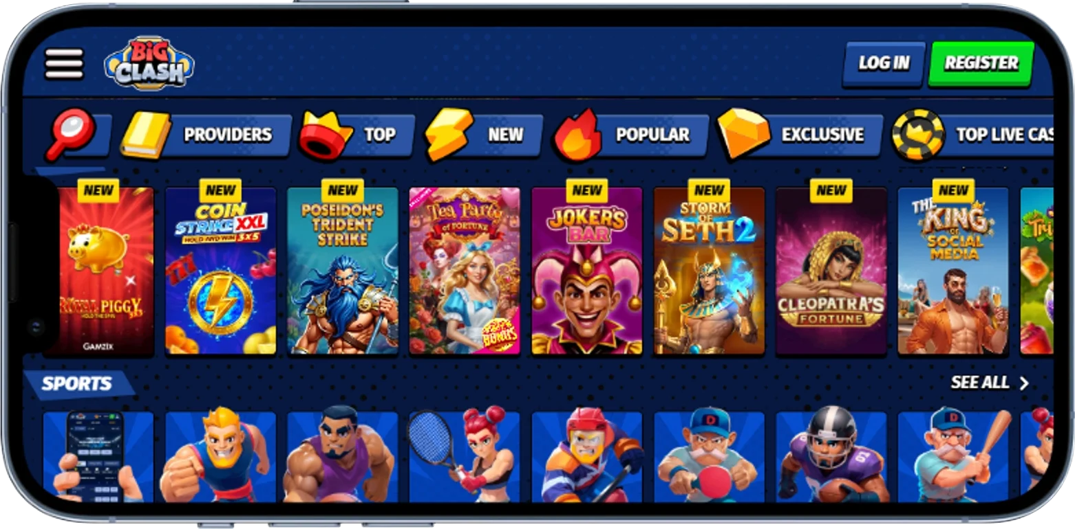 We offer gamblers a thrilling casino experience, providing both casino games and sports betting events. Big Clash online casino features a user-friendly interface, offers unique bonuses and promotional offers. We cooperate with BetStop and Gambling Help Online to ensure our players always have access to all the tools they need for responsible gaming.